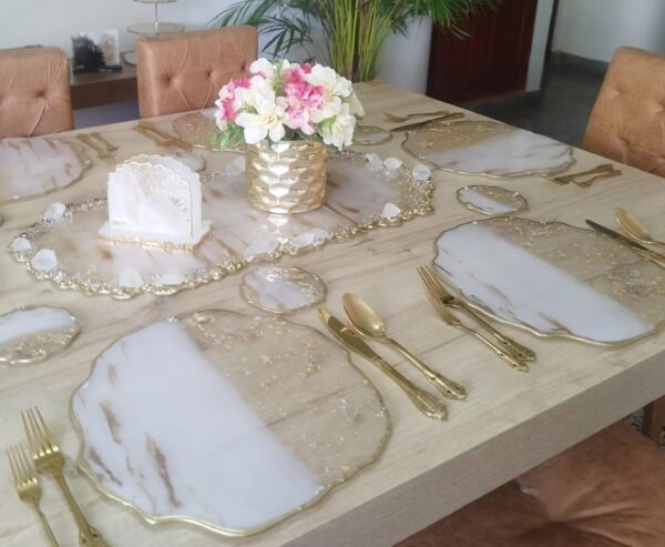 Resina con detalles de lujo, cristales, piedras, muranos y laminillas.