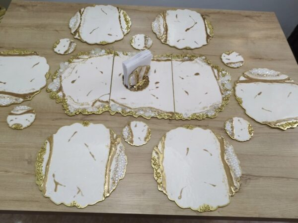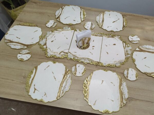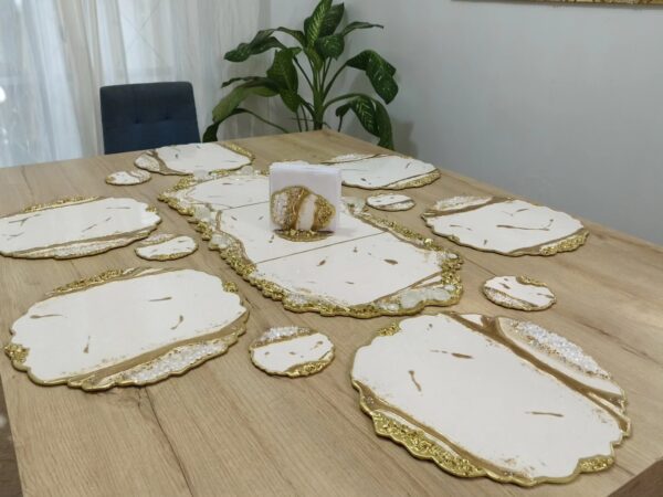 Resina con detalles de lujo, cristales, piedras, muranos y laminillas.