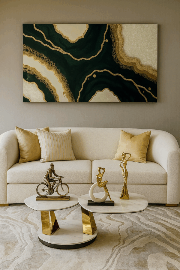 Descubre la elegancia y el brillo de nuestros cuadros de lujo en resina, elaborados a mano con cristales naturales, cuarzos y muranos que reflejan la luz y realzan cada detalle.