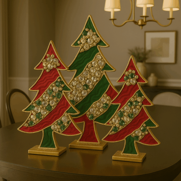 Este exclusivo set de 3 árboles en resina combina el brillo de los cristales, cuarzos y muranos con un diseño artesanal que refleja lujo y distinción.