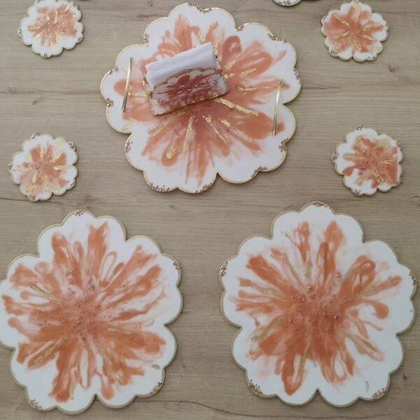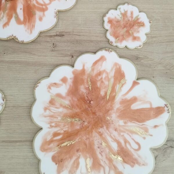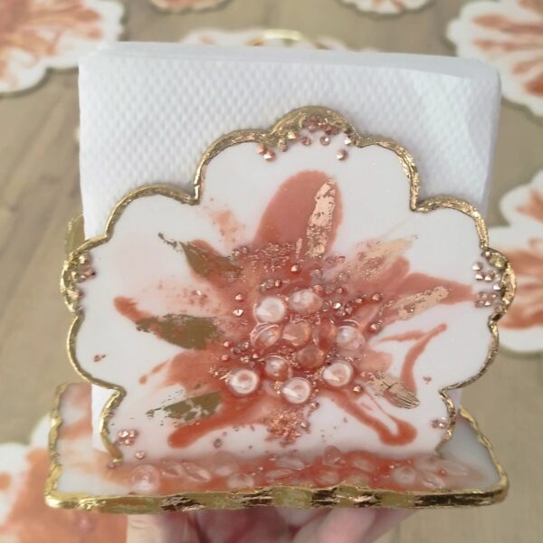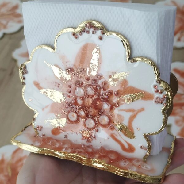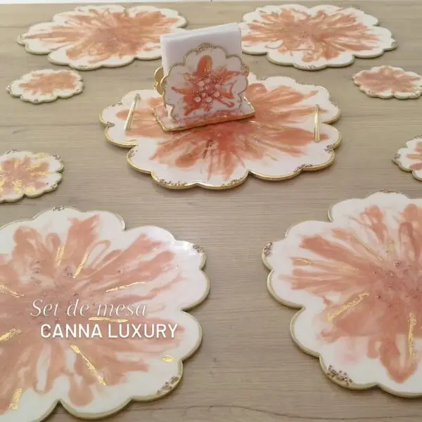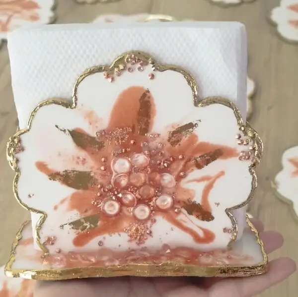 Resina con detalles de lujo, cristales, piedras, muranos y laminillas.