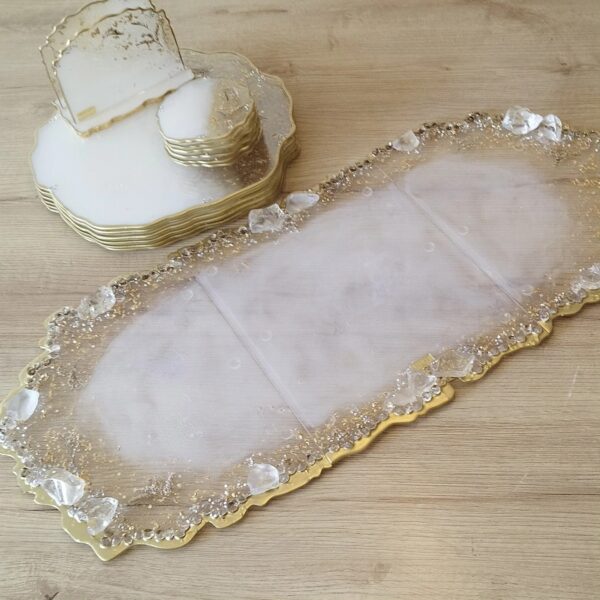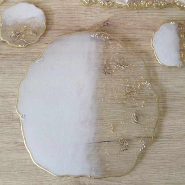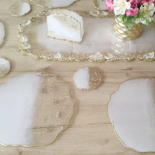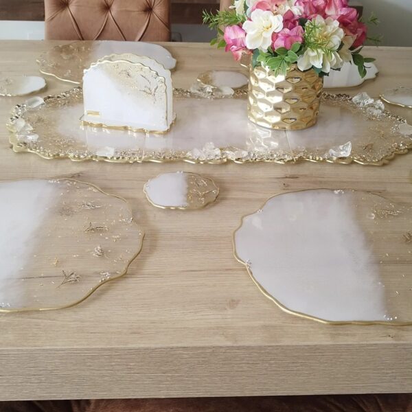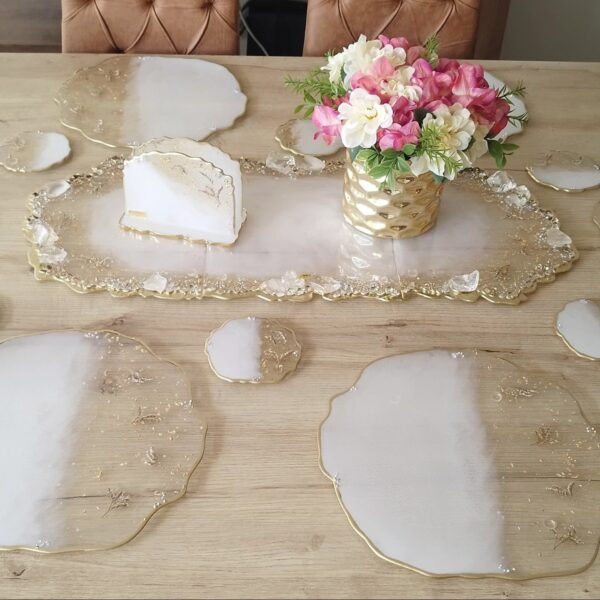 Set de mesa de lujo en forma irregular, es una opción perfecta para resaltar la belleza de tu mesa con un estilo Exclusivo y Atemporal.