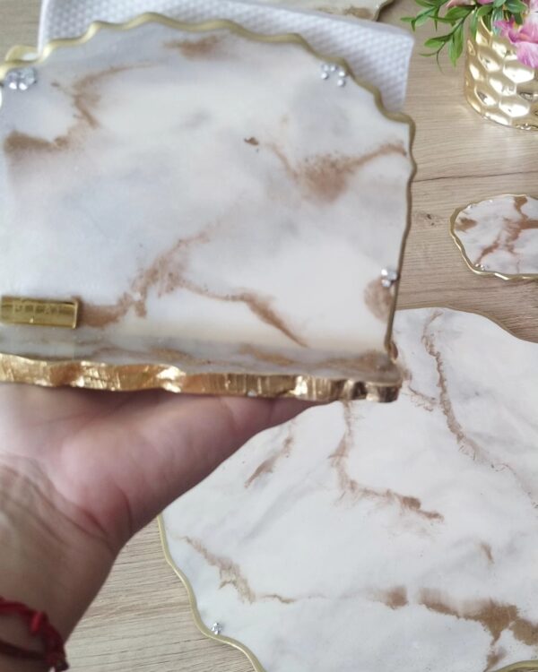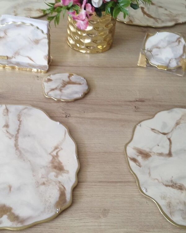 Set de mesa de lujo en forma irregular, es una opción perfecta  e innovadora para resaltar la belleza de tu mesa con un estilo Exclusivo y Atemporal.