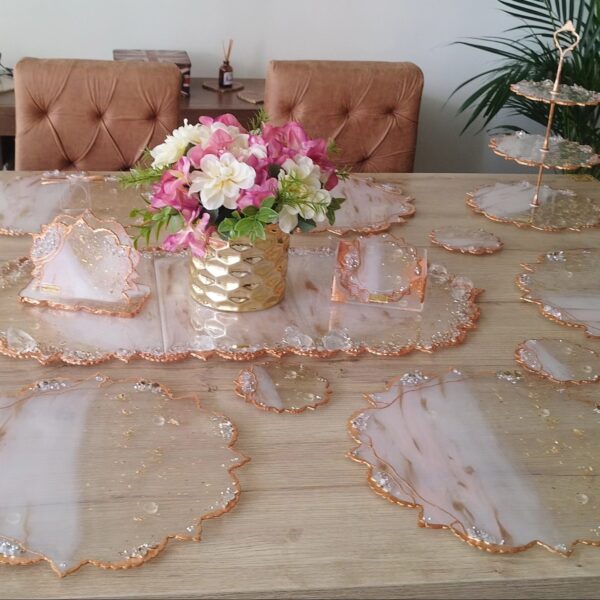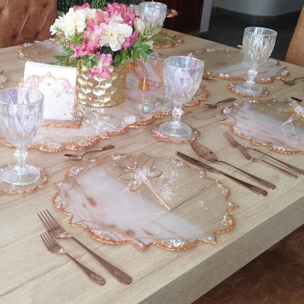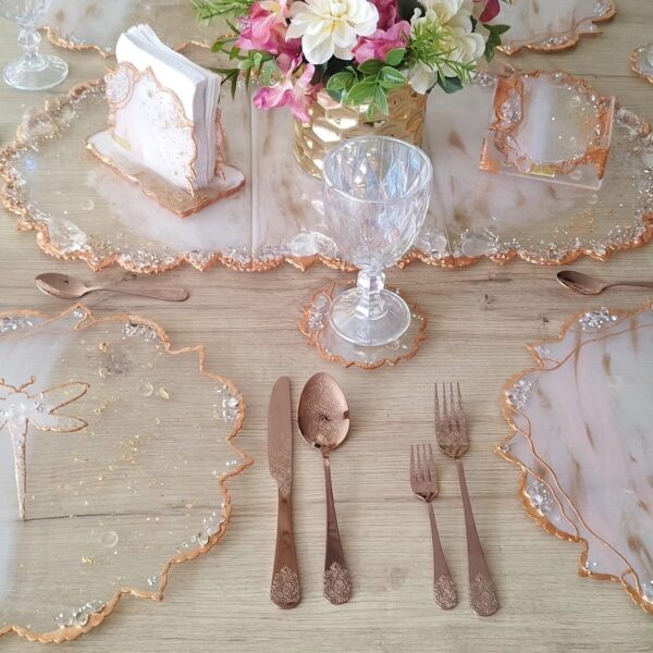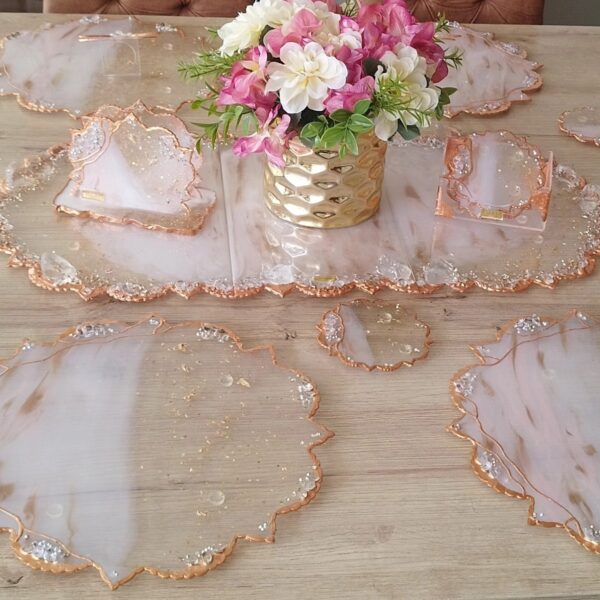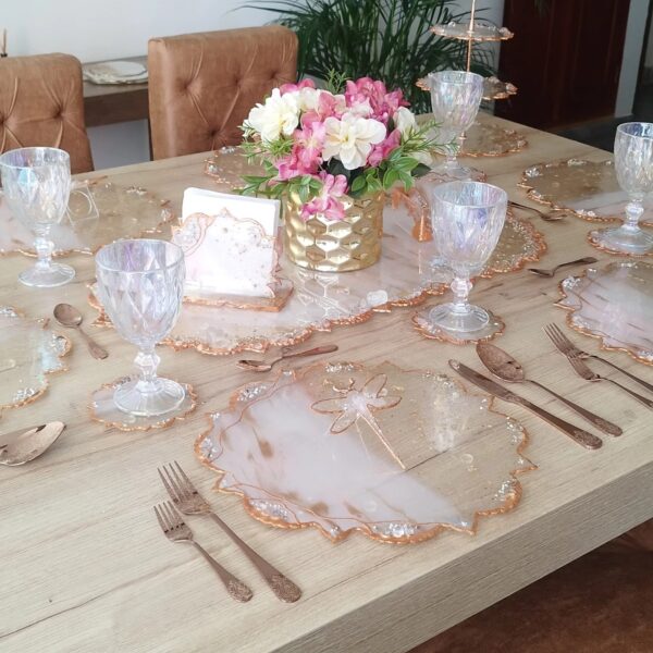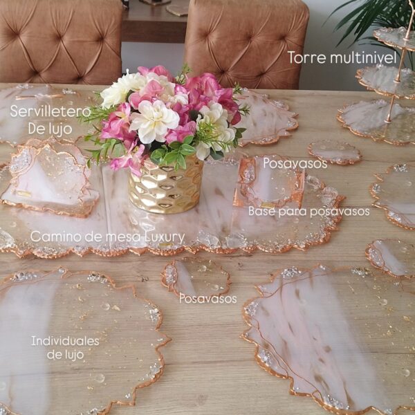 Resina con detalles de lujo, cristales, piedras, muranos y laminillas.