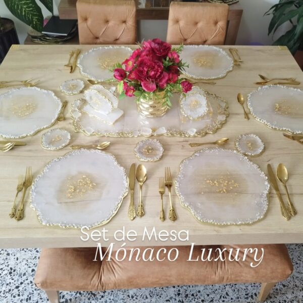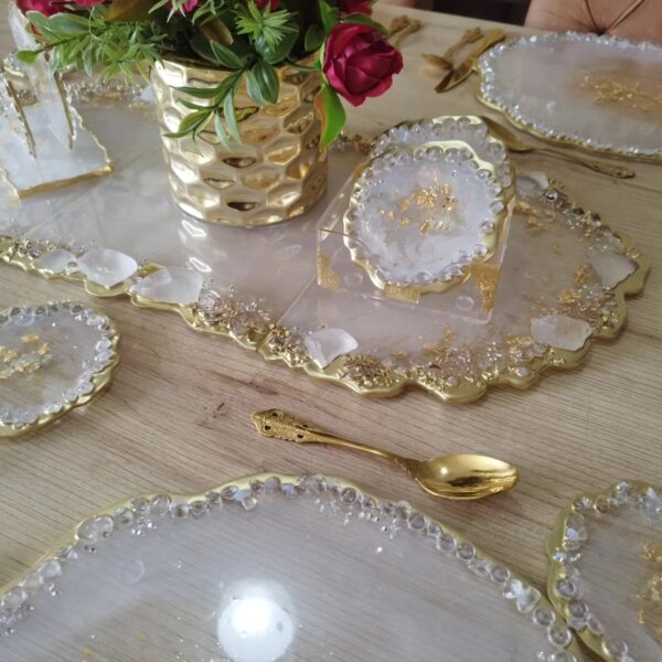 Resina con detalles de lujo, cristales, piedras, muranos y laminillas.