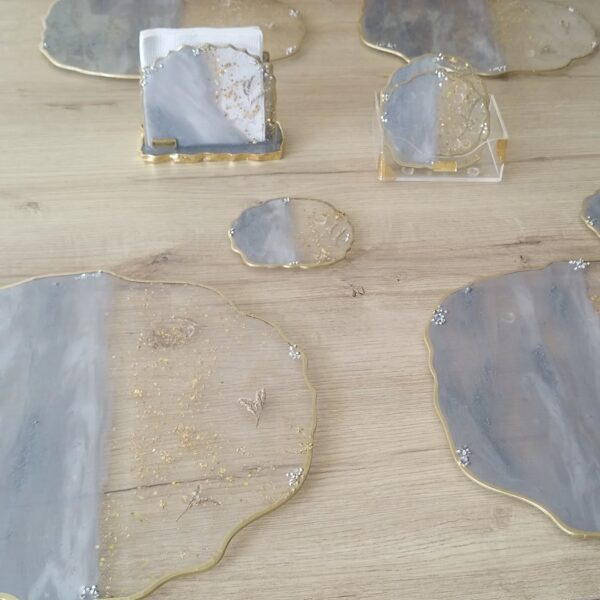 Set de mesa de lujo en forma irregular, es una opción perfecta  e innovadora para resaltar la belleza de tu mesa con un estilo Exclusivo y Atemporal.